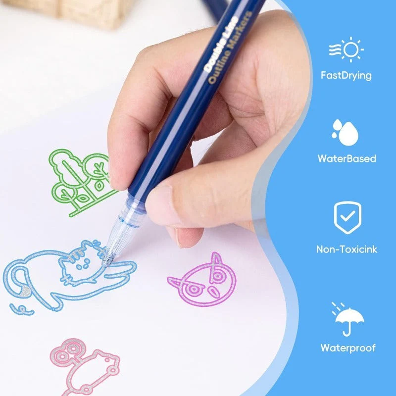 Outline Marker Pen Set — Dual-Line Magic with Metallic Shine